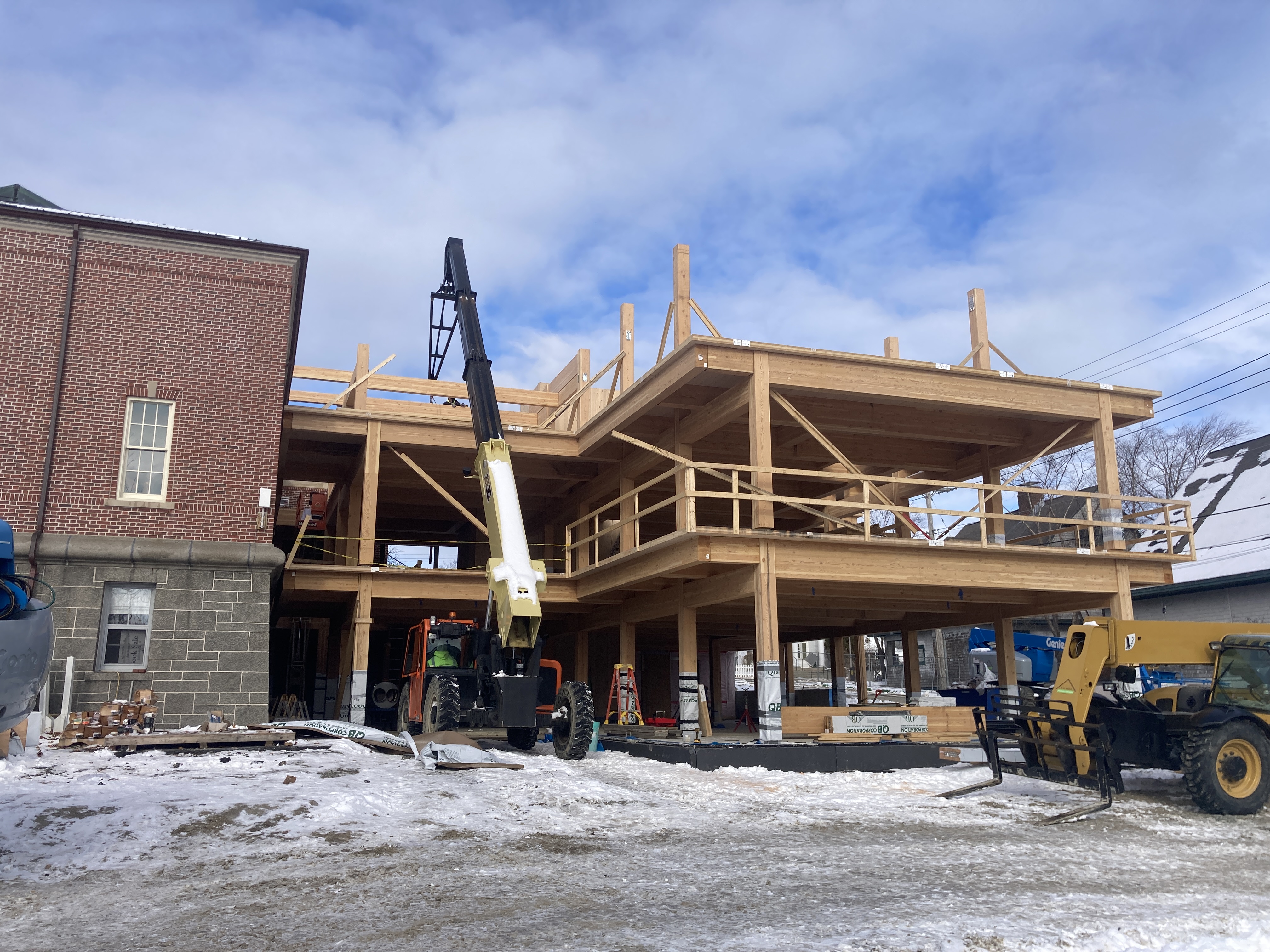 Construction is underway on the renovation and expansion of this historic library (12,800 SF) on the National Register of Historic Places. The 9,600 SF modern addition will create much-needed program space for the library, utilizing locally sourced CLT and glulam construction. The renovation and addition will create a larger children’s area, adult reading areas, meeting rooms, community rooms, and archival space. This active library will benefit from the additional space to meet the needs of Bar Harbor and the surrounding communities.